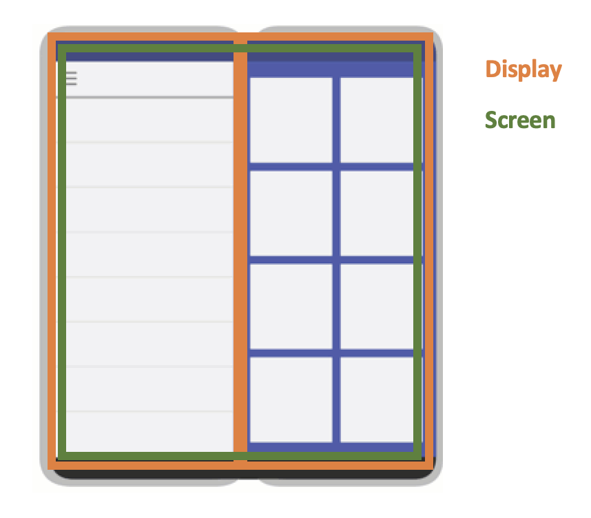 - (내생각) 스크린은 유저에게 정보를 보여주는 전체적인 창이고 디스플레이는 물리적으로 (폴더블에서는 분리되어있는) 창을 의미하는 것 같다. 그래서 라지-디스플레이가 아닌 라지-스크린이라고 하는 것 같다.