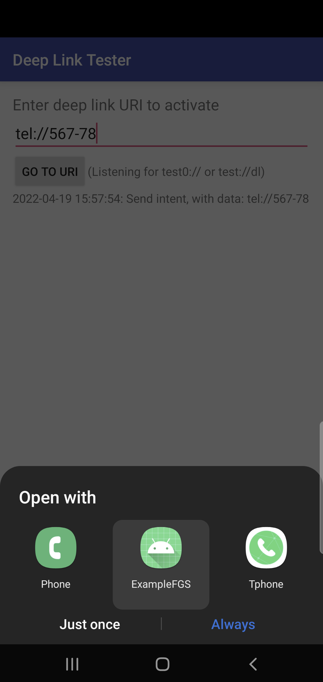 // FGS stop button LogActivity: onCreate() savedInstanceState=null LogActivity: onStart() LogActivity: onResume() MyPlayerService: onCreate() MyPlayerService: onStartCommand() // tap stop button // relaunched. MyApplication: onCreate() LogActivity: onCreate() savedInstanceState=null LogActivity: onStart() LogActivity: onResume() MyPlayerService: onCreate() MyPlayerService: onStartCommand()