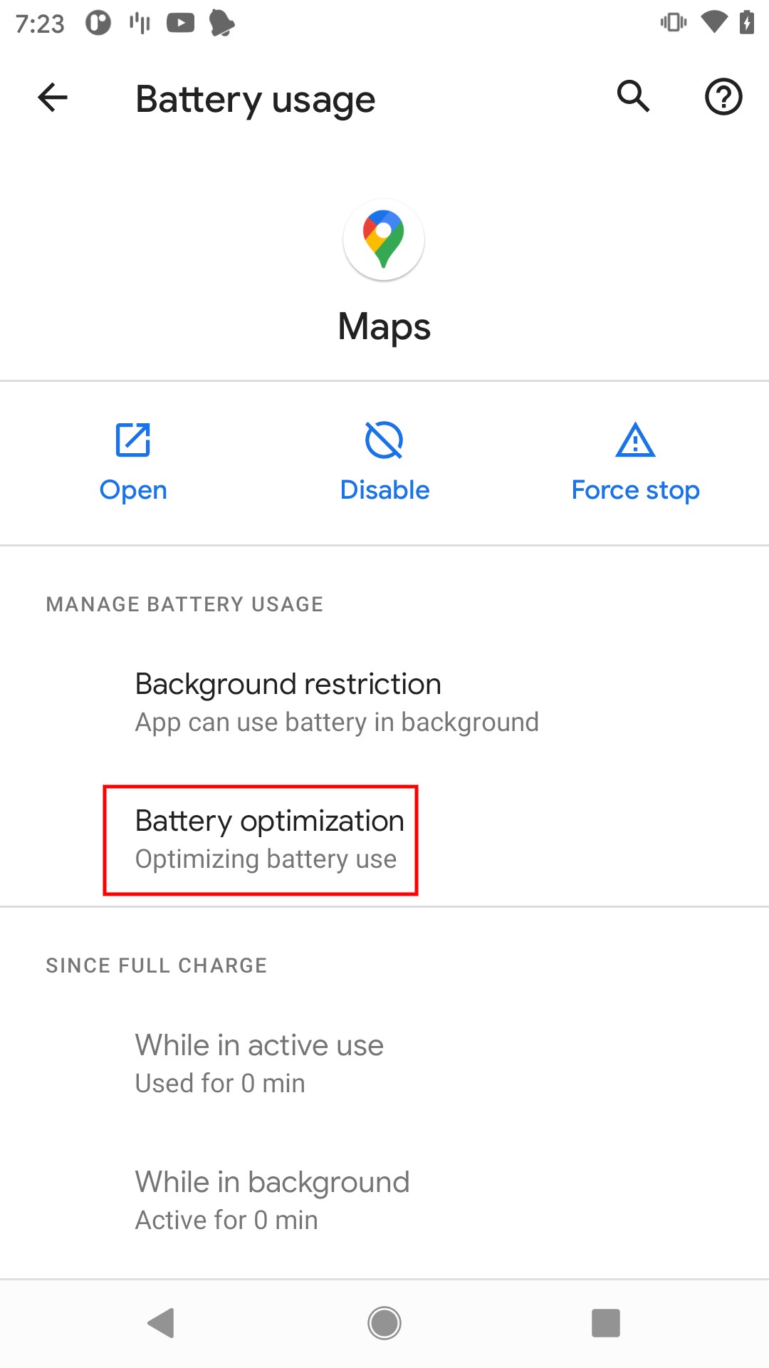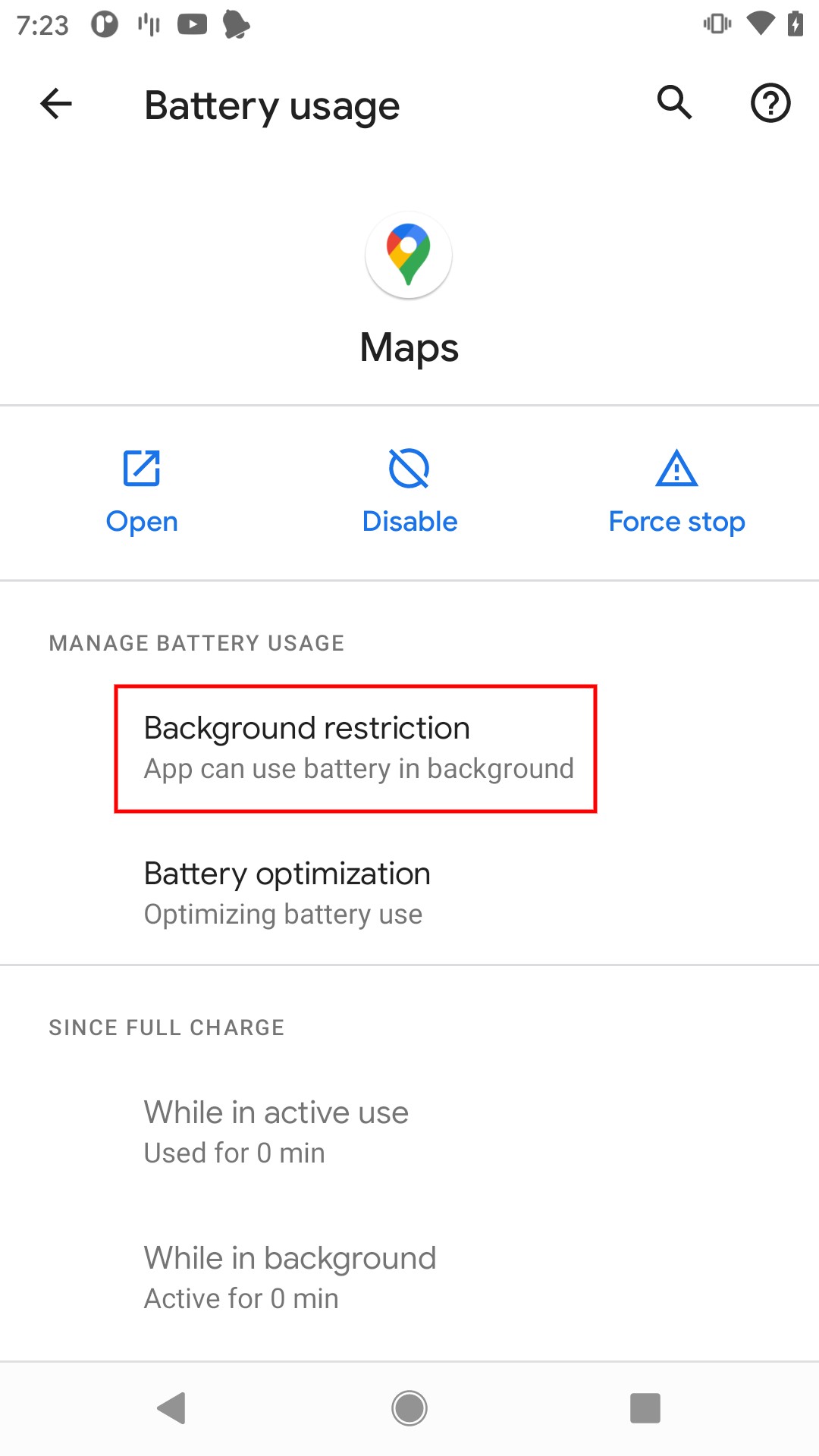 Background restriction가 제일 강력한 제한이라 Battery Optimization로 제한되고 있는지 알기 어려움