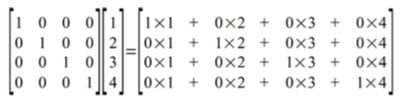 항등 행렬(Identity matrix)와 x,y,z,w의 vector이다. 4x1 행렬로 나타내며, vercot는 1차원 점하나이거나 color값을 의미한다.