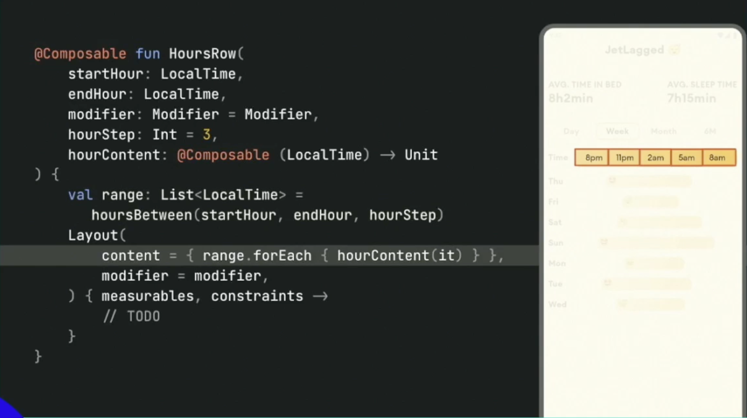 A sample app called Jetlagged.