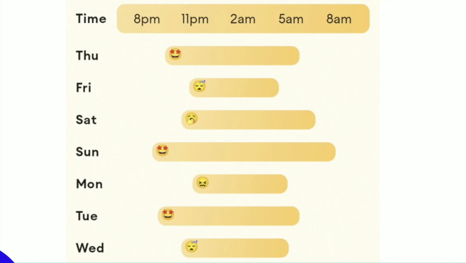 We want to position this component we called bar and we can see that its position configured by the header because this bar is representing a slip we had which started 8 PM and ended at around 8 AM. It’s definitely more than I had of today.